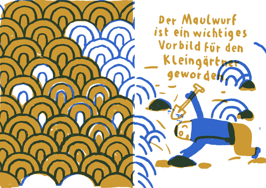 Der »Maulwurfexzess« entstand aus meinen Beobachtungen zum Thema Kleingärten und deren Bewohner. Ich lernte meine Nachbarparzellanten in unserer Kleingarten-Kolonie »Panke« kennen. Allgemeine Befindlichkeiten der Gesellschaft konnte ich auch in dieser Sparte wiedererkennen.